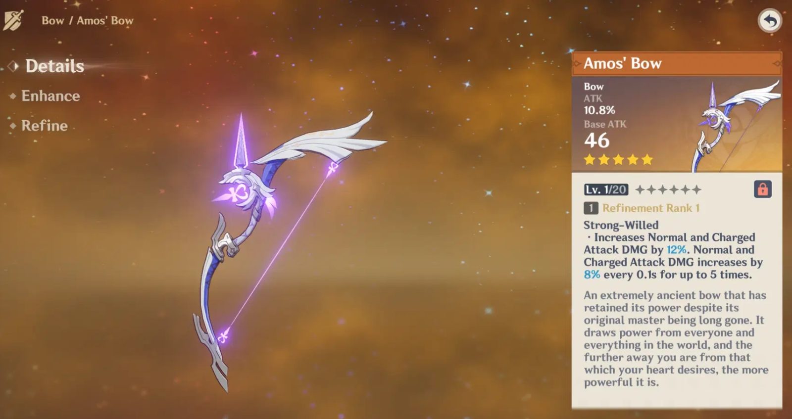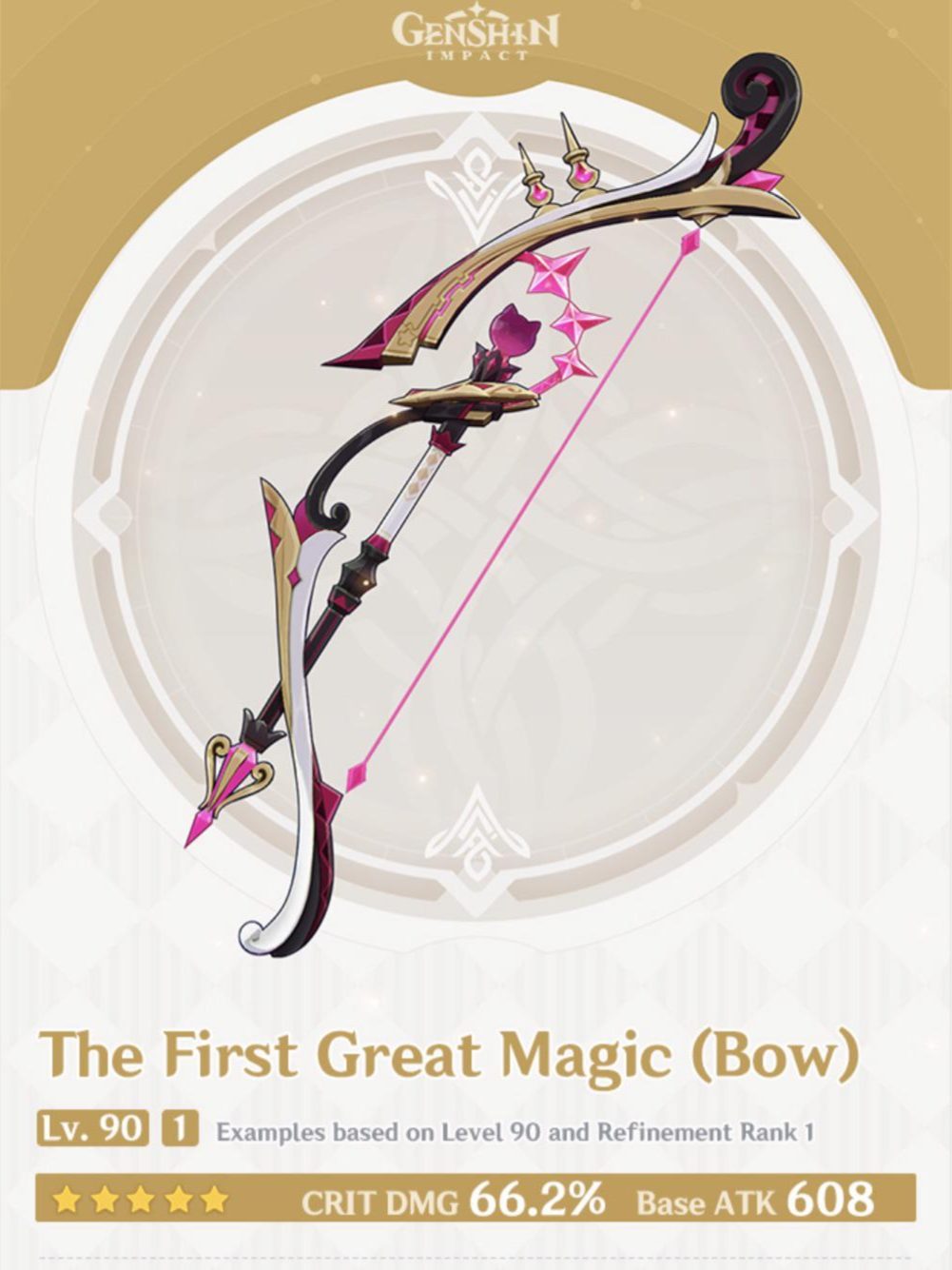 - Rarity / Elemen / Senjata: 5★ / Anemo / Bow